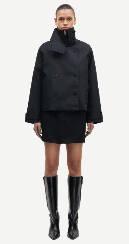 Blue x Frizzante2-in-1 jacket, consisting of a short trench coat and padded jacket with a regular fit and dropped shoulders. Double-breasted button closure on the front of the outer jacket and zipper closure on the front of the inner jacket. Adjustable cuffs with buttoned straps on the outer jacket. High neck on both jackets. Welt pockets on the front of both jackets. Inner jacket is padded. Main material of the outer jacket made from 100% cotton. Main material of the inner jacket made from mini ripstop.