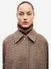 Blue x FrizzanteRelaxed fitting long wool coat with a round neckline and collar. Raglan sleeves, button fastening center front, cuff straps. Vertical front welt pockets, inside pocket, lined. Meida Insulation 40 grams. Recycled wool and polyamide blend fabric with houndstooth check. Main material is Manteco MWool®, woven in Italy from a recycled wool-blend.