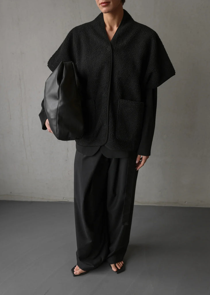 Blue x FrizzanteThis short-sleeve teddy gilet is the perfect blend of comfort and versatility. Designed with soft, plush fleece on one side and a smooth, suede look fabric on the reverse, it effortlessly adapts to your mood or outfit. The material is 100% pes.