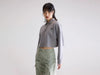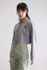Blue x FrizzanteCropped polo met rits in heidegrijze neopreenachtige stof, met een kraag in polostijl.